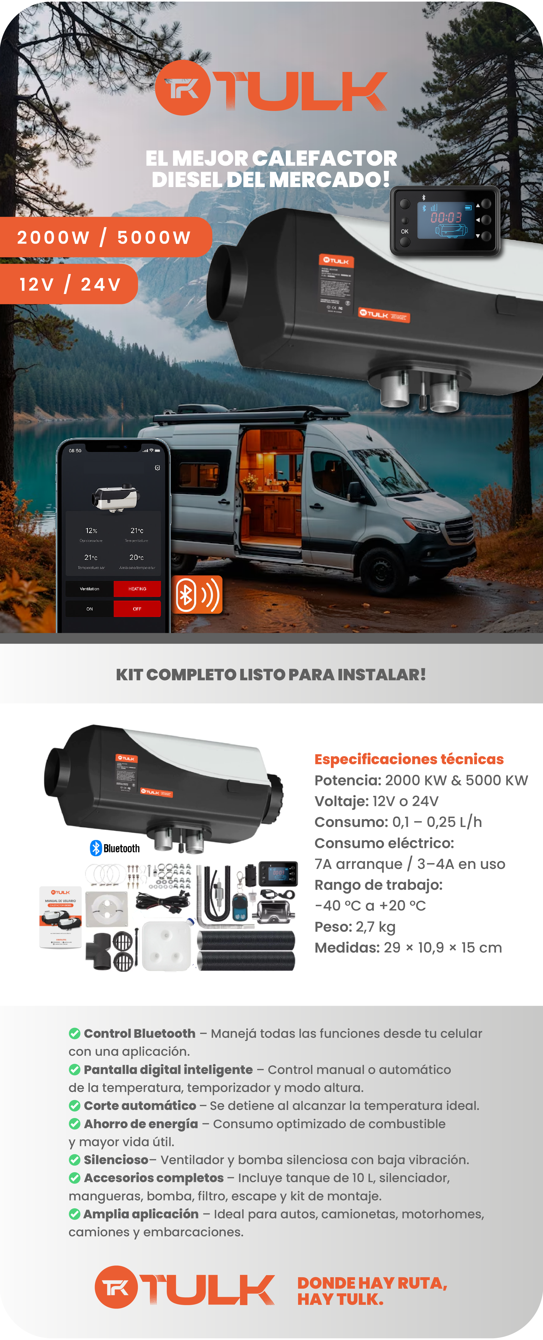 Calefactor / Panel digital / bomba de combustible / manguera de combustible /
