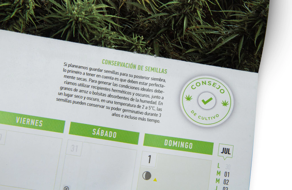 Calendario lunar de cultivo 2025El cultivo es una práctica que demanda tiempo y planificación, ya que el objetivo es que el esfuerzo rinda frutos. Para lograr plantas vigorosas y obtener una abundante cosecha, es fundamental llevar un control detallado del proceso.En este sentido, el calendario de cultivo que ofrece THC es una herramienta invaluable. Nos permite monitorear cada etapa con precisión, además de brindarnos recomendaciones para mejorar nuestros cultivos. También considera la influencia de las fases lunares, que juegan un papel clave en cada momento del ciclo de las plantas.🌱¿Cuándo plantar cannabis en el hemisferio sur en 2025?En el hemisferio sur, la mejor época para plantar cannabis al aire libre suele ser en la primavera, cuando las temperaturas comienzan a subir y las horas de luz aumentan. En 2025, deberías plantar cannabis entre septiembre y noviembre, para aprovechar los meses más cálidos y largos del verano.El ciclo natural de la planta permitirá que florezca durante el verano y la cosecha idealmente se hará a finales del verano o principios de otoño, entre marzo y abril de 2026, dependiendo de la variedad.Si tienes semillas autoflorecientes, podrías tener más flexibilidad con los tiempos de siembra, ya que no dependen tanto de las horas de luz.🌙¿Cómo influye la luna en mi cultivo de cannabis?La fuerza de gravedad de la Luna tiene su influencia sobre la Tierra. Esto se ve en distintos fenómenos, el más conocido es el delas mareas: a mayor o menor distancia de la Luna, mayor o menor atracción de los mares habrá.De la misma manera, la Luna interviene en los movimientos de los fluidos vegetales dentro de nuestras plantas. Por esta razón, tener en cuenta la influencia de la Luna en nuestros cultivos puede ser una herramienta muy interesante que nos ayude a optimizarlo. Sin embargo, muchas veces surgen inconvenientes de último minuto en nuestros cultivos, como las plagas. En esos casos, tenemos que hacer lo que sea necesario para revertir la situación sin tener en cuenta las distintas fases lunares.🤔¿Cómo me ayuda el calendario lunar?El calendario lunar cannábico nos va a ayudar a encontrar el momento más acertado para realizar las distintas tareas de cultivo, a la vez que nos va a permitir ordenarlas y programarlas. De esta manera, podemos encontrar la fase lunar más apta para germinar, cosechar, abonar nuestros cultivos o realizar los trasplantes.También, el calendario de THC ofrece prácticas recomendadas para cada día del año y para cada mes, junto con un almanaque para realizar el seguimiento de nuestro cultivo. Además, vas a encontrar fotos increíbles de cogollos por cada mes del año y un póster gigante.🌖¿Cuál es la mejor fase lunar para germinar semillas en2025?🌔La mejor fase lunar para germinar semillas de cannabis es durante la Luna Nueva o el Cuarto Creciente. Estas fases favorecen el desarrollo de las raíces y el crecimiento inicial de las plantas.En 2025, las fechas aproximadas para germinar tus semillas serían alrededor de las siguientes fases:Luna Nueva: 28 de enero, 26 de febrero, 29 de marzo, y 28 de abril.Cuarto Creciente: 6 de febrero, 7 de marzo, 6 de abril, y 7 de mayo.Estas fechas te ayudarán a aprovechar la influencia lunar en la germinación de tus semillas.🌕¿Cuál es la mejor fase lunar para abonar?🪴Desde inicios de la Luna llena hasta fines de la Luna menguante, nuestras plantas aumentan su capacidad de absorción de aguas y nutrientes. Es oportuno entonces que aprovechemos esta etapa para fertilizar.Por su parte, la Luna creciente es un buen momento para preparar compost y para combatir plagas, porque en la fase subsiguiente la planta tiene mayor capacidad de regeneración.🔍Otras cuestiones a tener en cuenta al planificar el cultivode exteriorAdemás de la influencia Lunar, es bueno que tengamos en cuenta otras cuestiones a la hora deplanificar nuestros cultivos de exterior.En primer lugar, el espacio con el que contemos es un factor determinante a la hora de empezar con esta tarea. No es lo mismo plantar en balcones y terrazas que en jardines con una mayor amplitud.También, es importante tener en cuenta la exposición a la luz solar. Debemos procurar que nuestra planta reciba la cantidad de horas de sol directo necesarias para desarrollarse.Además, debemos resguardar a nuestras plantas de las fuentes de luz artificiales por las noches para evitar la contaminación lumínica. Recordemos que el cannabis necesita 12 horas de oscuridad plena.A su vez, es óptimo que planifiquemos de antemano cuando realizaremos los trasplantes para que nuestras plantas continúen creciendo y expandiéndose.