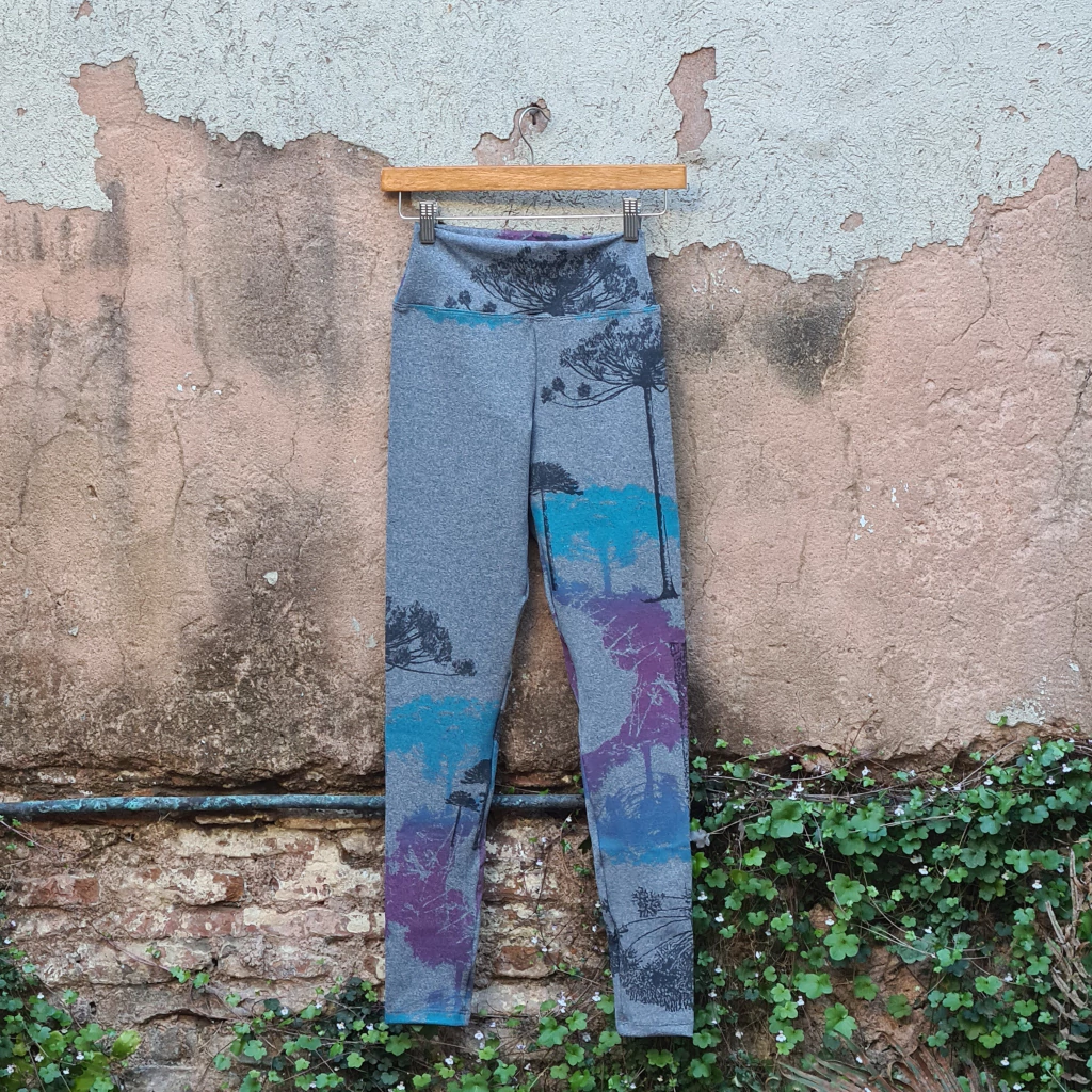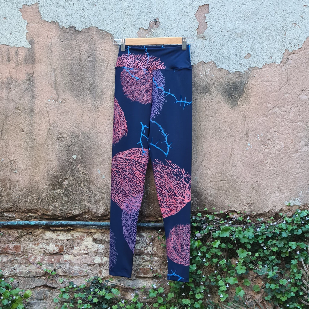 Calza de media estación, súper cómoda, ideal para cualquier actividad! Tiene cintura de la misma tela doble y es bien tiro alto. La tela es Polisap común (similar a una lycra) .Está estampada artesanalmente en serigrafía con dibujos de flora y fauna hechos a mano. Cada una es única y la disposición de la estampa varía  entre prendas ya que está hecha de manera artesanal.