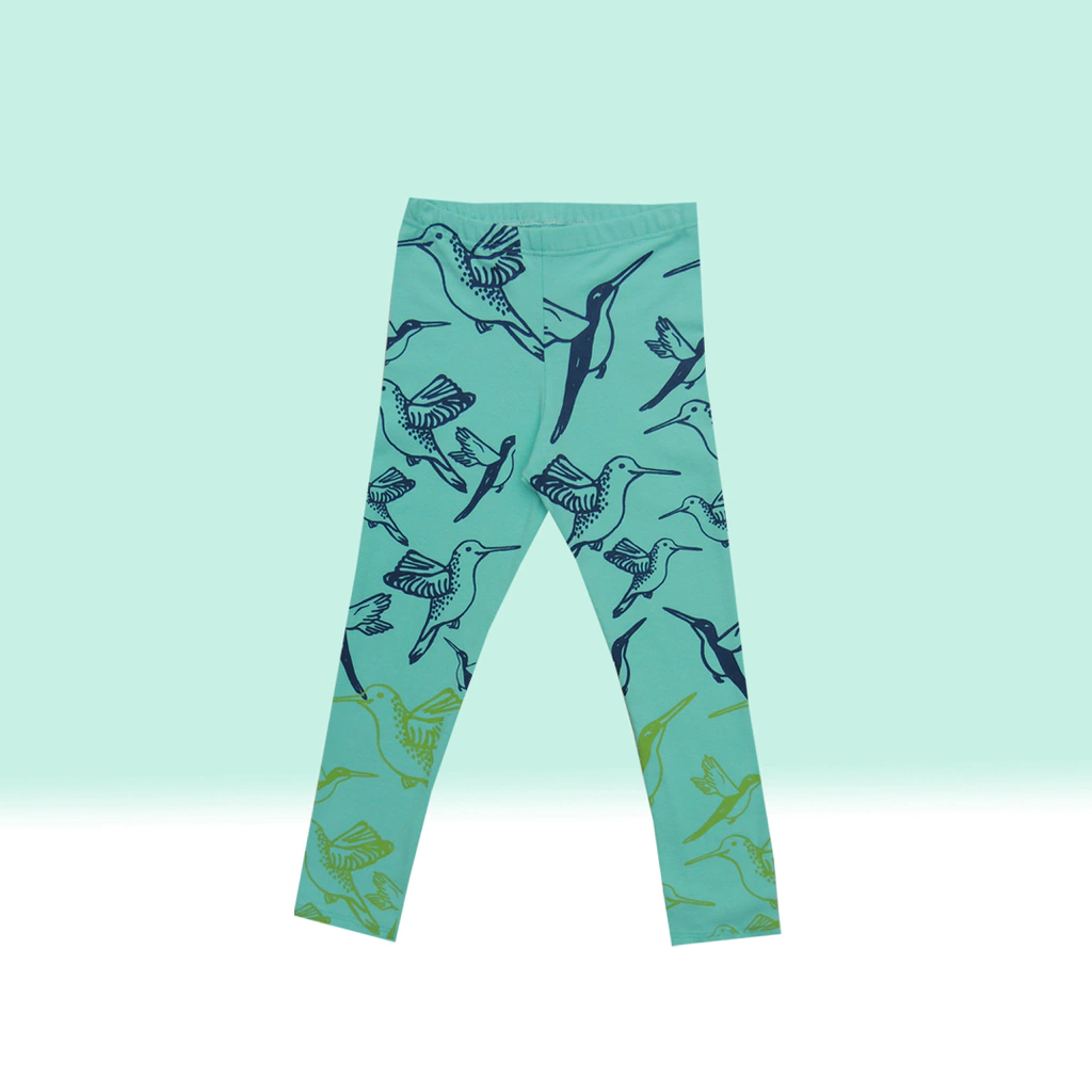 - Calza verde confeccionada en lycra y algodón. Prenda media estación para niñas y niños. Dibujada a mano y estampada en serigrafía manual. Estampas propias de lucas dice.