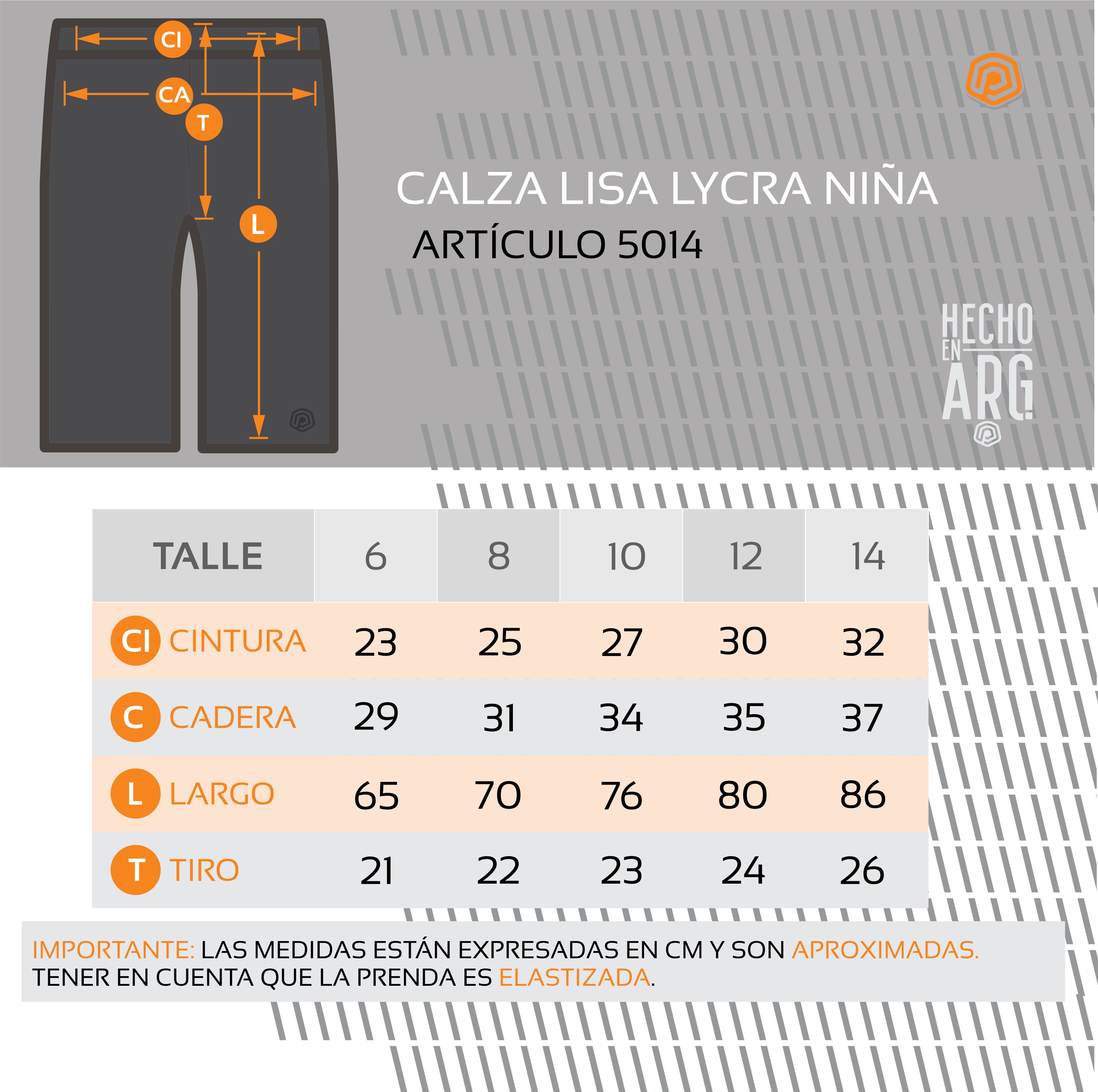 La prenda definitivamente imprescindible de cualquier Chica Activa. Nuestras calzas de lycra son un clásico que les encantará usar todos los días. Resistencia, comodidad y libertad de movimientos para practicar su deporte favorito o para usar en los momentos de ocio, están confeccionadas con lycra de primera calidad y son ideales para el uso diario ya son faciles de lavar y volver a usar.
