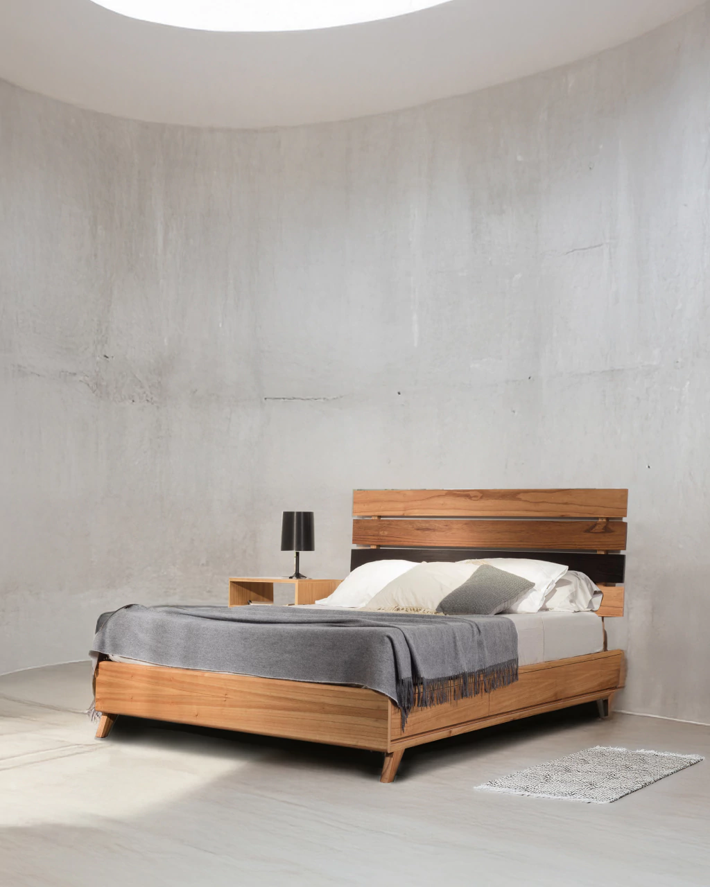 Cama de 2 plazas con cajones realizado en madera maciza paraíso / petiribí. Tratamiento poliuretánico.