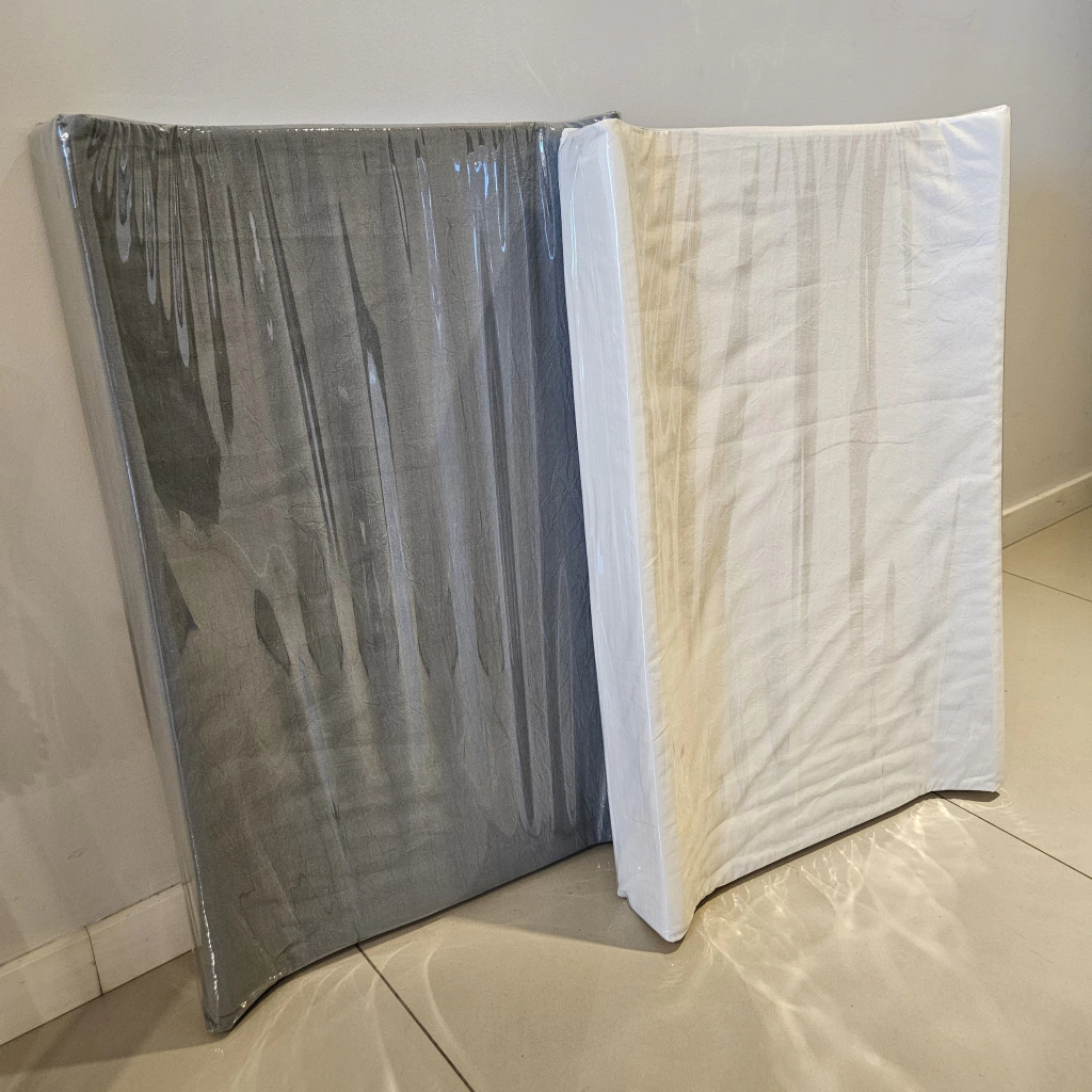 Relleno de goma espuma de alta densidad, forrado en tela estampada y con protección de plástico cristal.