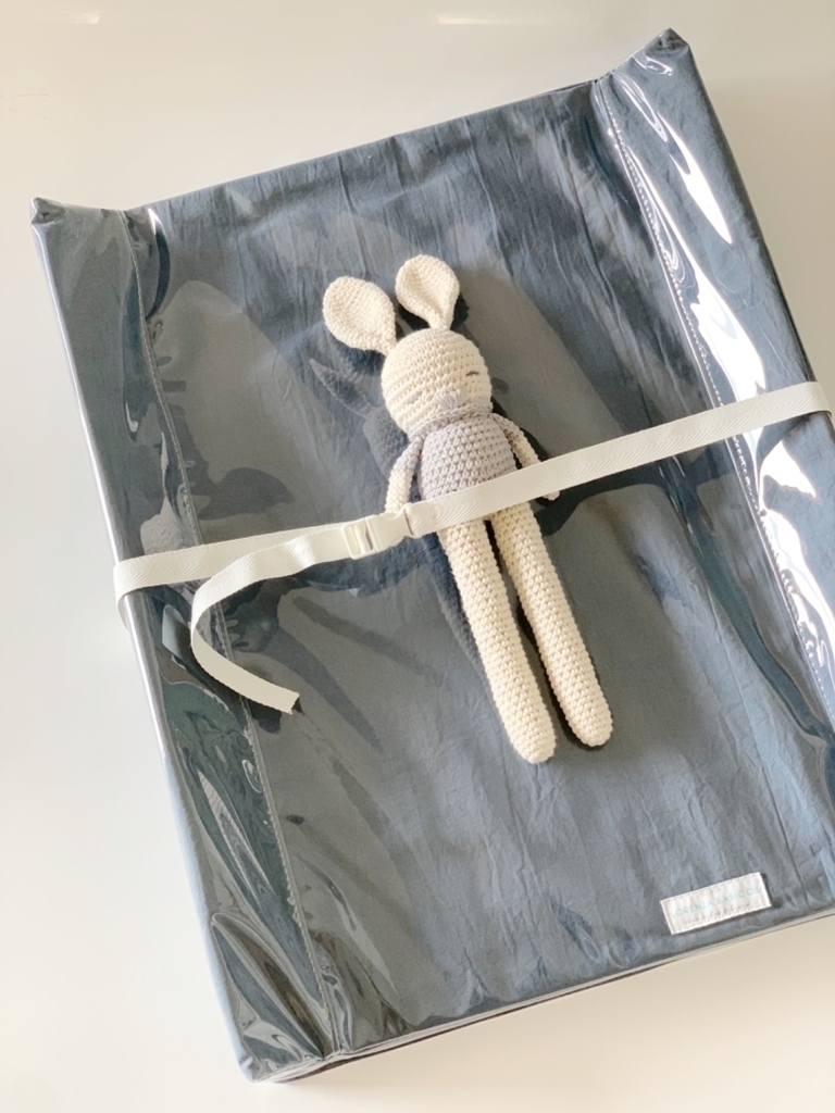 El Cambiador es de goma espuma de alta densidad para que mantenga su forma a través del tiempo. Está forrado primero en tusor liso para que te combine con toda tu decoración y luego por fuera está forrado en pvc cristal para que sea muy fácil limpiarlo con un trapito húmedo.