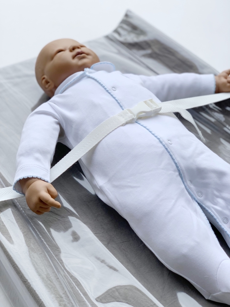 Al Cambiador tradicional le agregamos un cinturón de seguridad regulable para que puedas sujetar mejor a tu bebé mientras lo estás cambiando.