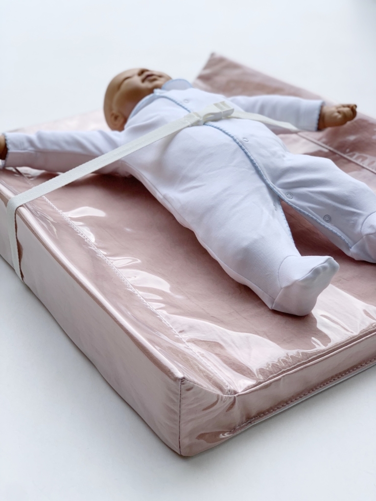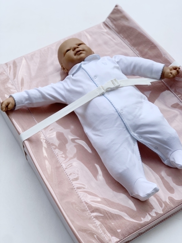 Al Cambiador tradicional le agregamos un cinturón de seguridad regulable para que puedas sujetar mejor a tu bebé mientras lo estás cambiando.