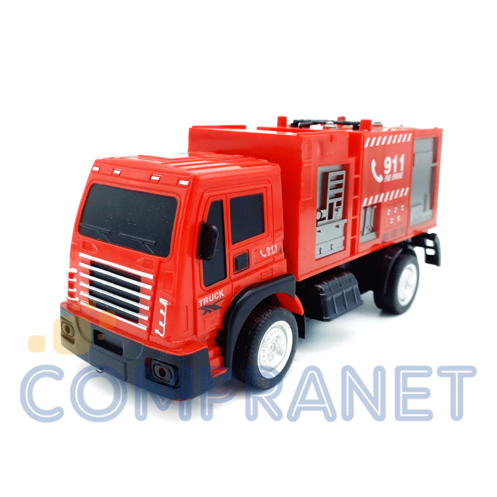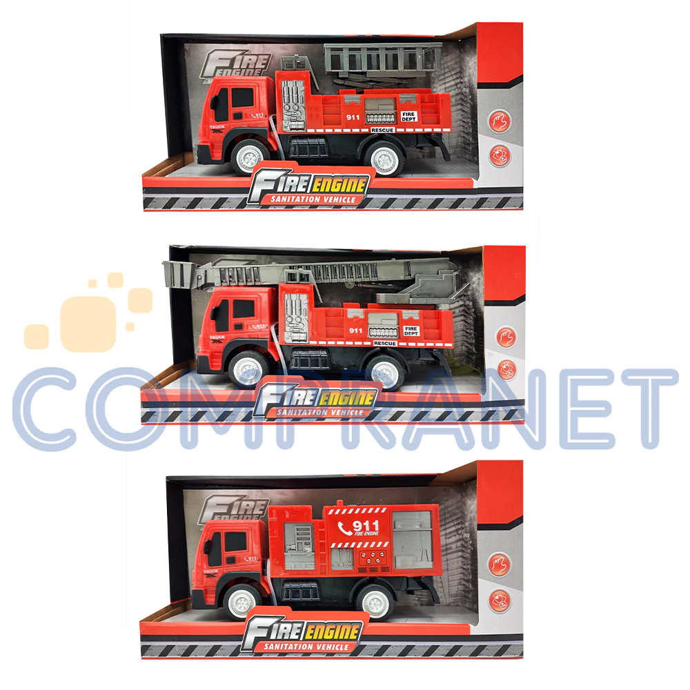 Camión de Bombero a fricción. Hiperrealista. Posee 4 ruedas de goma. Fácil de usar, simplemente empujar el camión y funciona a fricción.El Modelo 1 posee elevador Extensible que se pliega y repliega.El Modelo 2 es una autobomba común.El Modelo 3 posee una escalera extensible con elevador pequeño.Material: Plástico. De excelente calidadPara niños mayores de 3 años. Permiteel desarrollo de la interacción entre los niños, estimula la imaginación, la comunicación y la capacidad de pensamiento. Desarrolla las habilidades motoras, de coordinación, movimiento, equilibrio y creatividad.En Blister. No utiliza pilas.Medidas de Modelo 1: 21 cm (largo) x 11 cm (alto) x 8 cm (ancho)Medidas del Modelo 2: 21 cm (largo) x 9 cm (alto) x 8 cm (ancho)Medidas de Modelo 3: 25 cm (largo) x 11 cm (alto) x 8 cm (ancho)