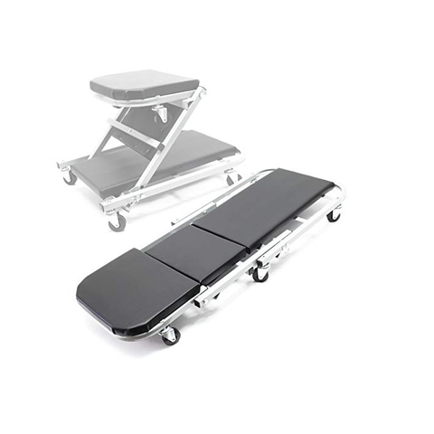 Camilla banquito 2 en 1.Posee 6 ruedas.Hecha de metal resistente (Resiste 150KG).Convertible en banco Z ideal para trabajos en tren delantero, frenos, etc.