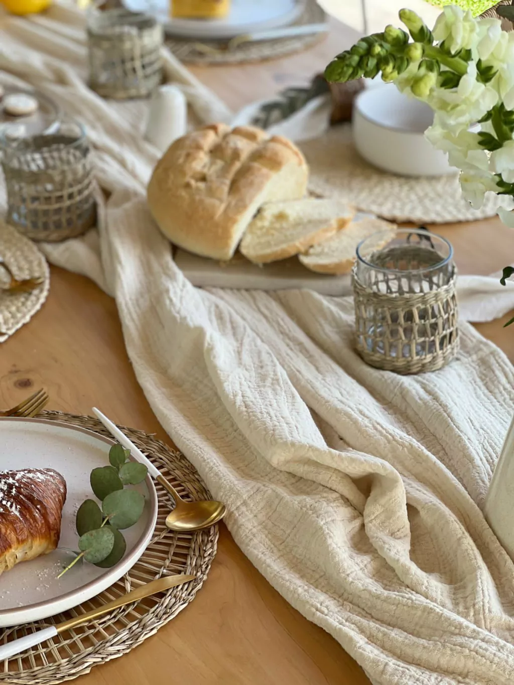 Confeccionado en gasa 100% algodón natural, este camino liso aporta un toque suave y luminoso a tu mesa. Su textura liviana permite realzar cualquier ambiente, ideal para reuniones y cenas diarias.