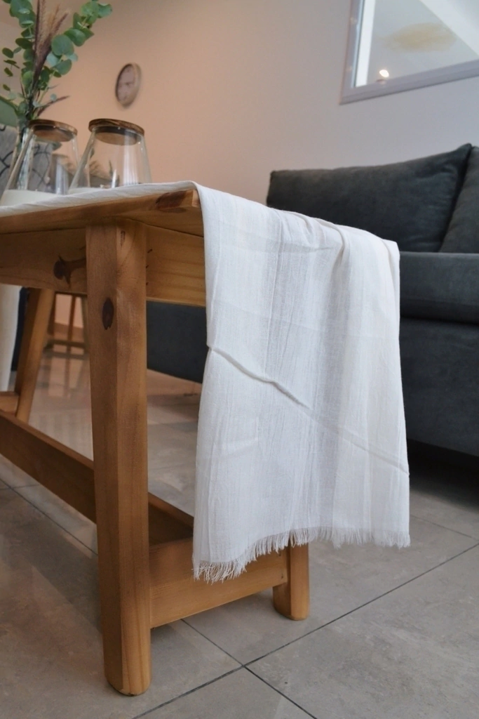 Confeccionado en gasa 100% algodon, desflecado en sus dos extremos.