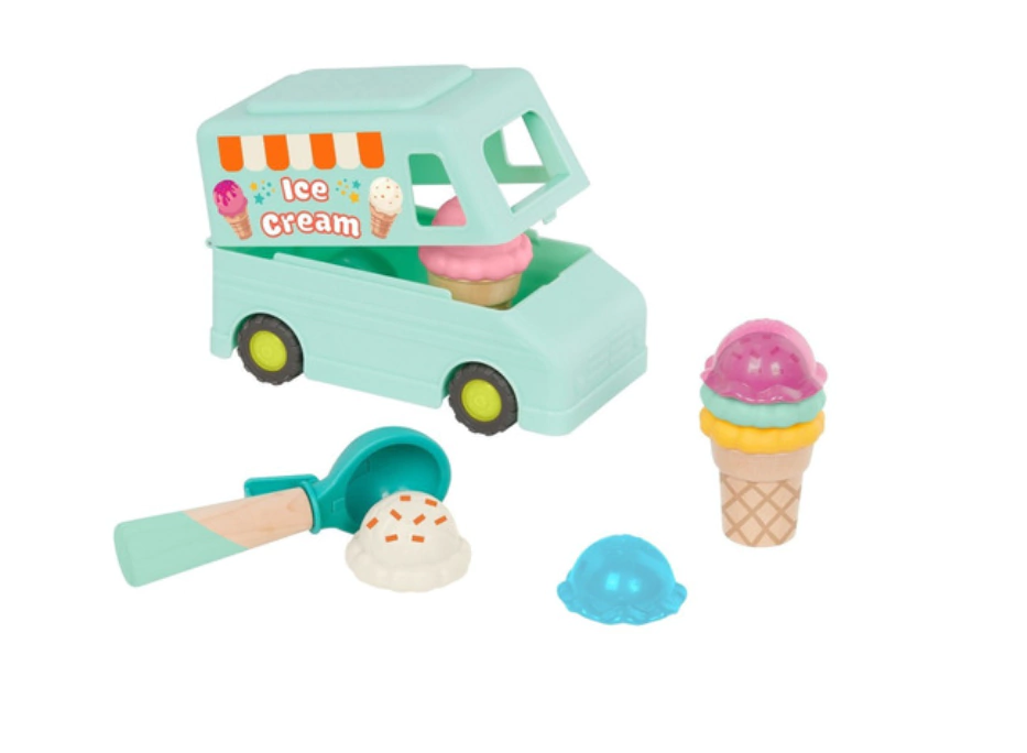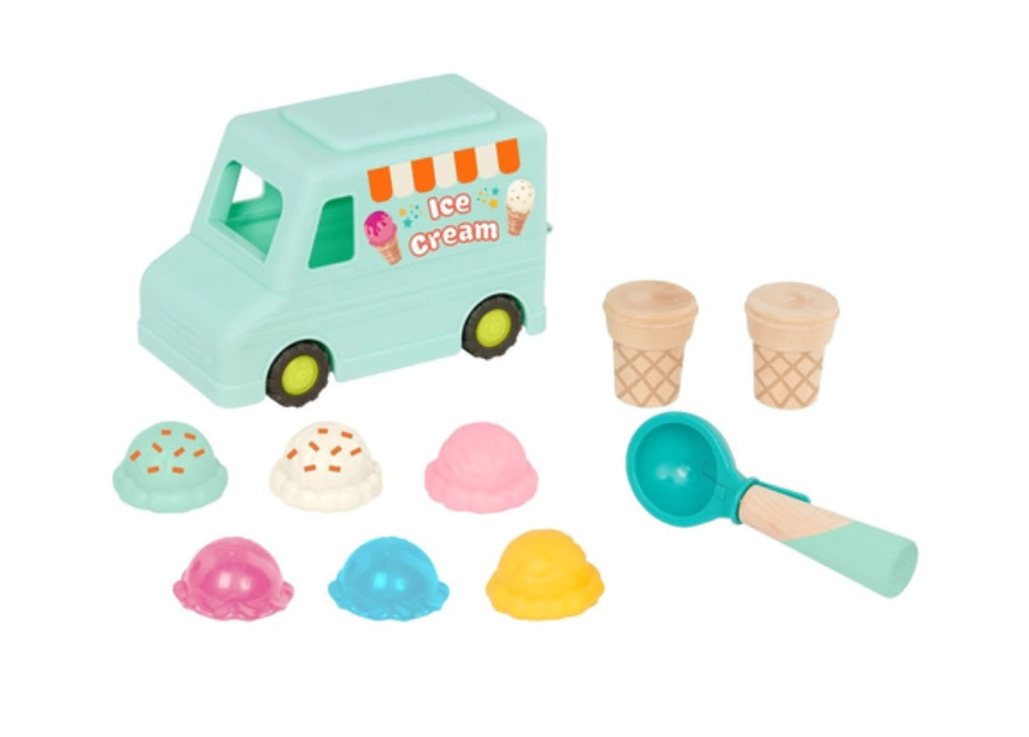 Ring-a-ling! Ring-a-loo! ¡Una primicia para mí y una primicia para ti! El set de juego Sweet Scoops está repleto de diversión y viene con un camión de juguete, 4 bolas de helado diferentes, 2 coberturas translúcidas, 2 conos de madera y una pala magnética que ayuda a los niños pequeños a apilar fácilmente sus golosinas. El camión de helados cuenta con ruedas gruesas que ruedan suavemente sobre superficies planas y un espacio de almacenamiento secreto: ¡simplemente ábrelo y coloca todas las piezas dentro! Este juego colorido y educativo es ideal para muchos juegos de simulación y viene con muchas oportunidades de aprendizaje para los más pequeños. Estos juguetes despiertan la creatividad, mejoran las habilidades motoras finas y ayudan a los niños a explorar diferentes colores y practicar el conteo mientras apilan las bolas. ¡Saca, apila, sirve y juega todo el día! Recomendado para niños a partir de 2 años.
