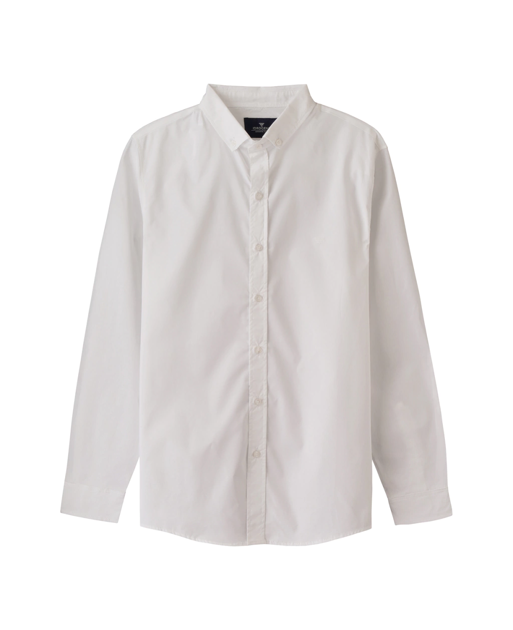 Camisa regular confeccionada en poplín 100% algodón lavado. Posee cuello clásico con botones ocultos y bolsillo plaque. Acceso mediante botones al tono en el delantero con cartera aplicada.Referencia modelo: Altura 1,87 mts , Talle: L