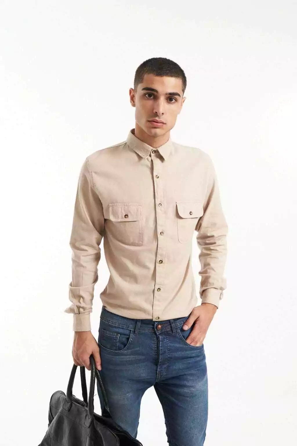 Camisa lisa en viyela lisa con bolsillo, calce regular