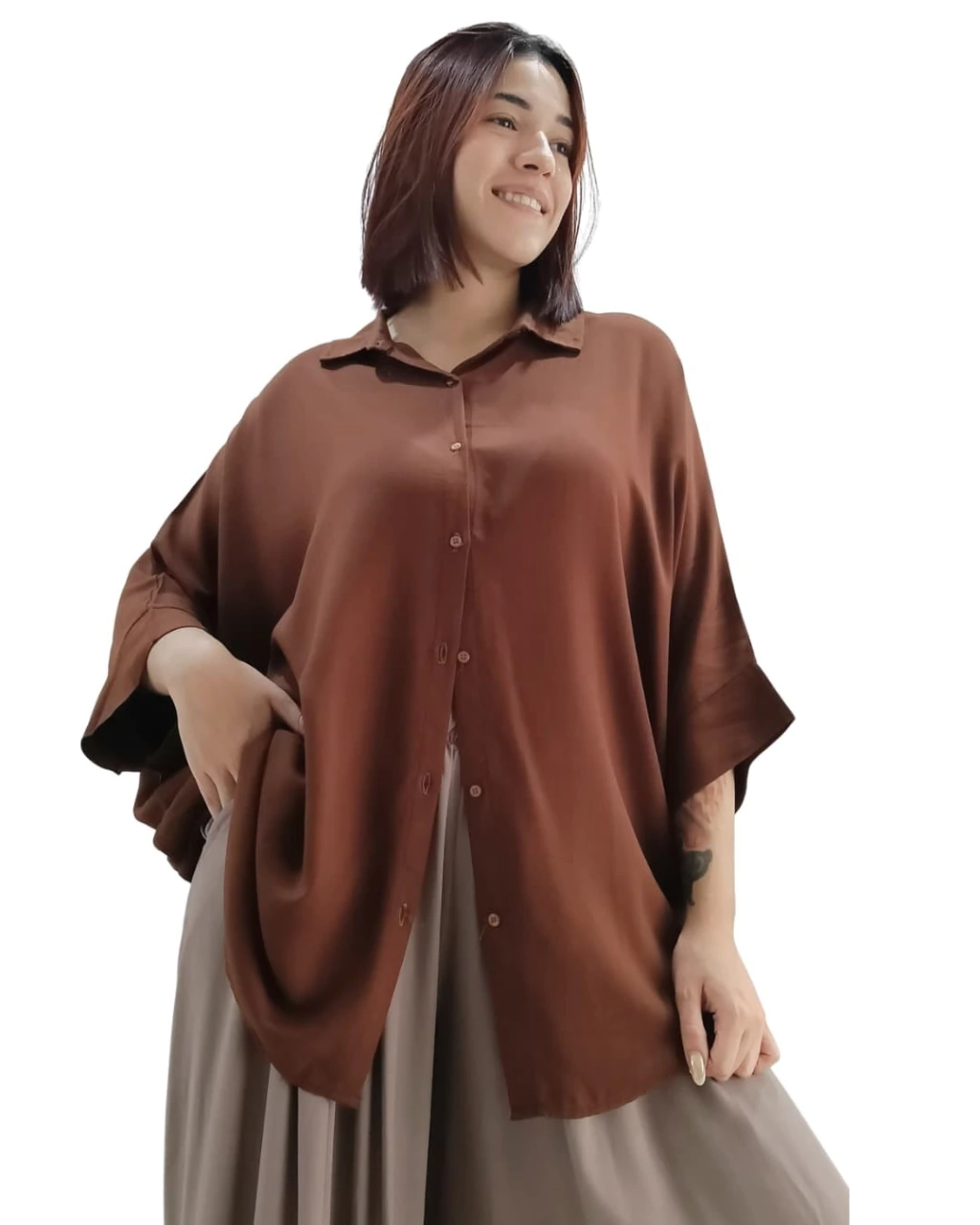 Maxi Camisa Oversize XXL Manga 3/4Mega Oversized 184 cms de Contorno BustoConfeccionada 100% Algodón TWILL TEXTURADOGenero mas gruesito, con textura - CALIDAD PREMIUMCorte super holgado, mas largo por detras! Para usar como Camisa, o Vestido cortoTalle Unico XXLMedidasAncho de Busto medido Siza a Siza 92 cms ( contorno total 184 cm)Contorno Cadera 140 cmsLargo delantero 71cmsLargo Trasero 83 cmsLargo de manga 3/4 38cmsAncho de mangas en puño. 36 cms contornoVer medidas referenciales enhttps://kuwana.com.ar/tabla-de-talles/