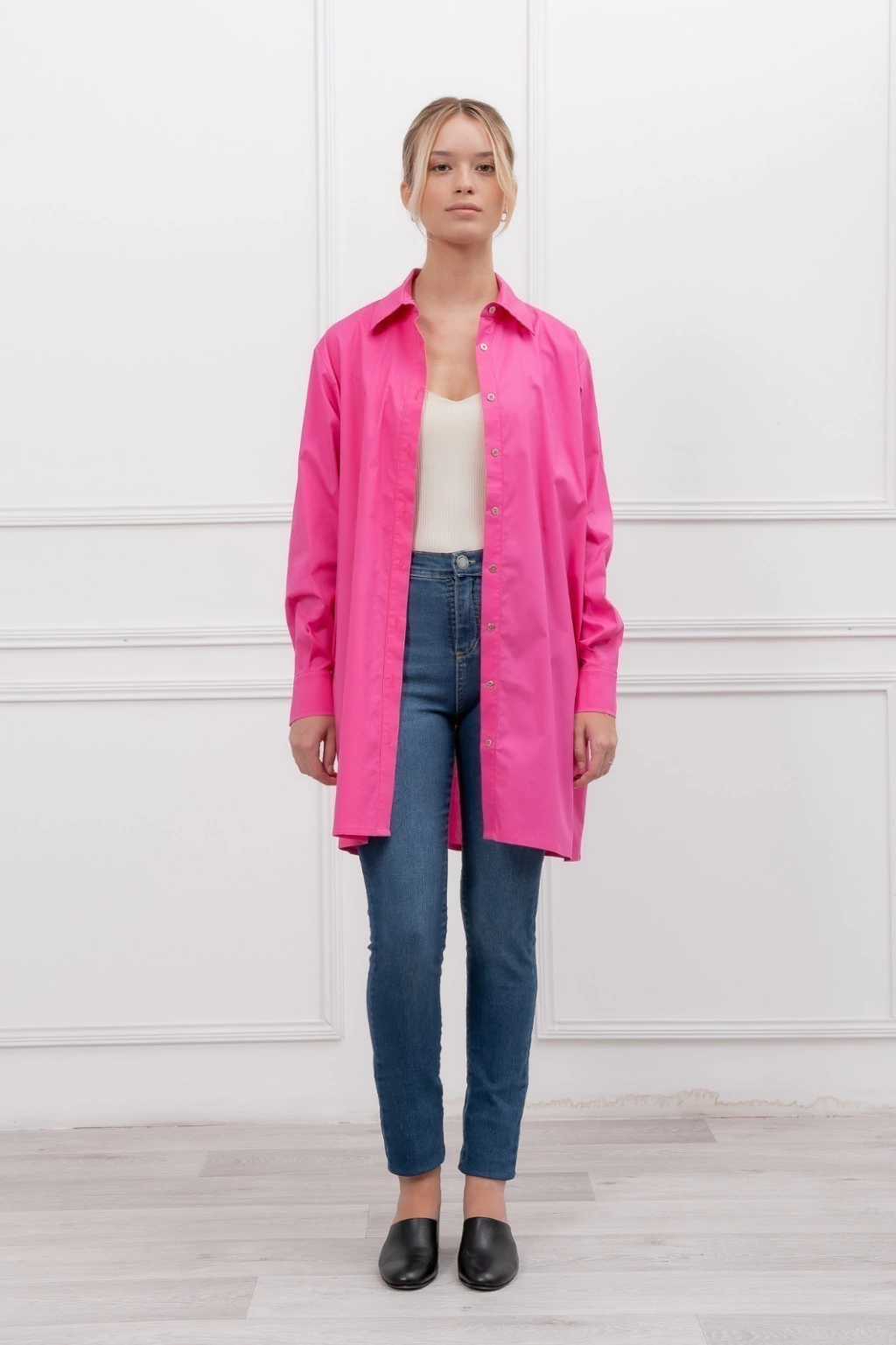 Camisa de poplín larga. Súper canchera y versátil. Puede usarse tanto abierta sobre una remera o body o cerrada como vestido entallandola con un cinturón.Composición:97% algodón, 3% spandexCuidados:LAVAR A MANO / NO DEJAR EN REMOJO / NO RETORCER / PLANCHAR A TEMPERATURA BAJA