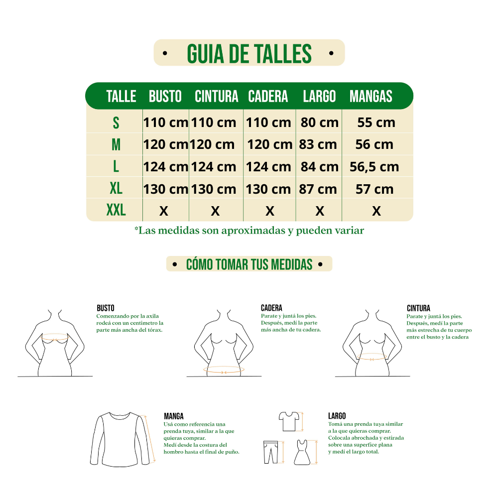Talle S, M, L y XL (Ver guia de talles)