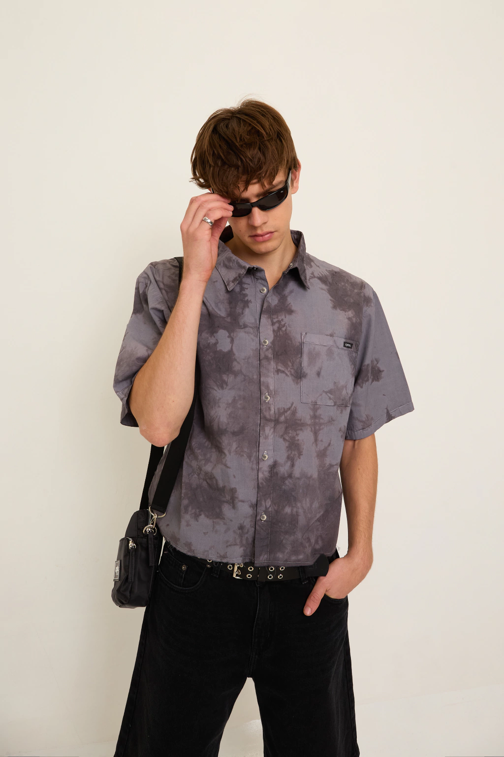 CAMISA DE POPLIN EFECTO LAVADO, RUEDO CORTADO DESHILACHADO