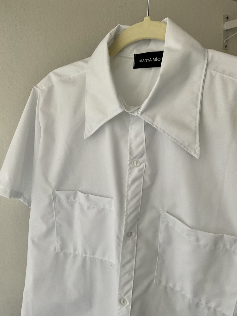 Camisa manga corta, de poplin, con cuello de terminación más larga que la clásicaAncho 62 cmLargo 70 cmLargo manga 26 cm
