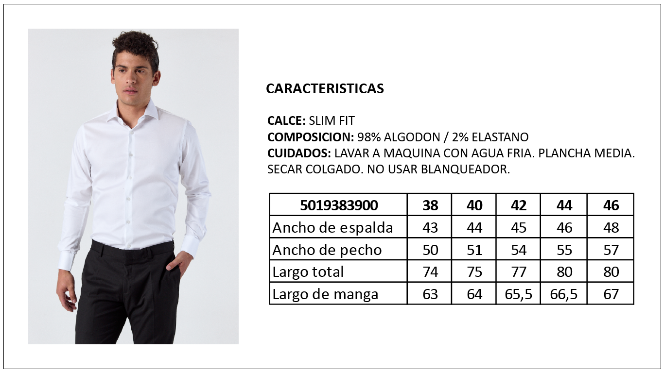 Camisa vestir lisa slim fit confeccionada en algodon y elastano.