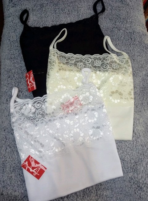 Camiseta de algodon con breteles finos y top de encaje . art 180