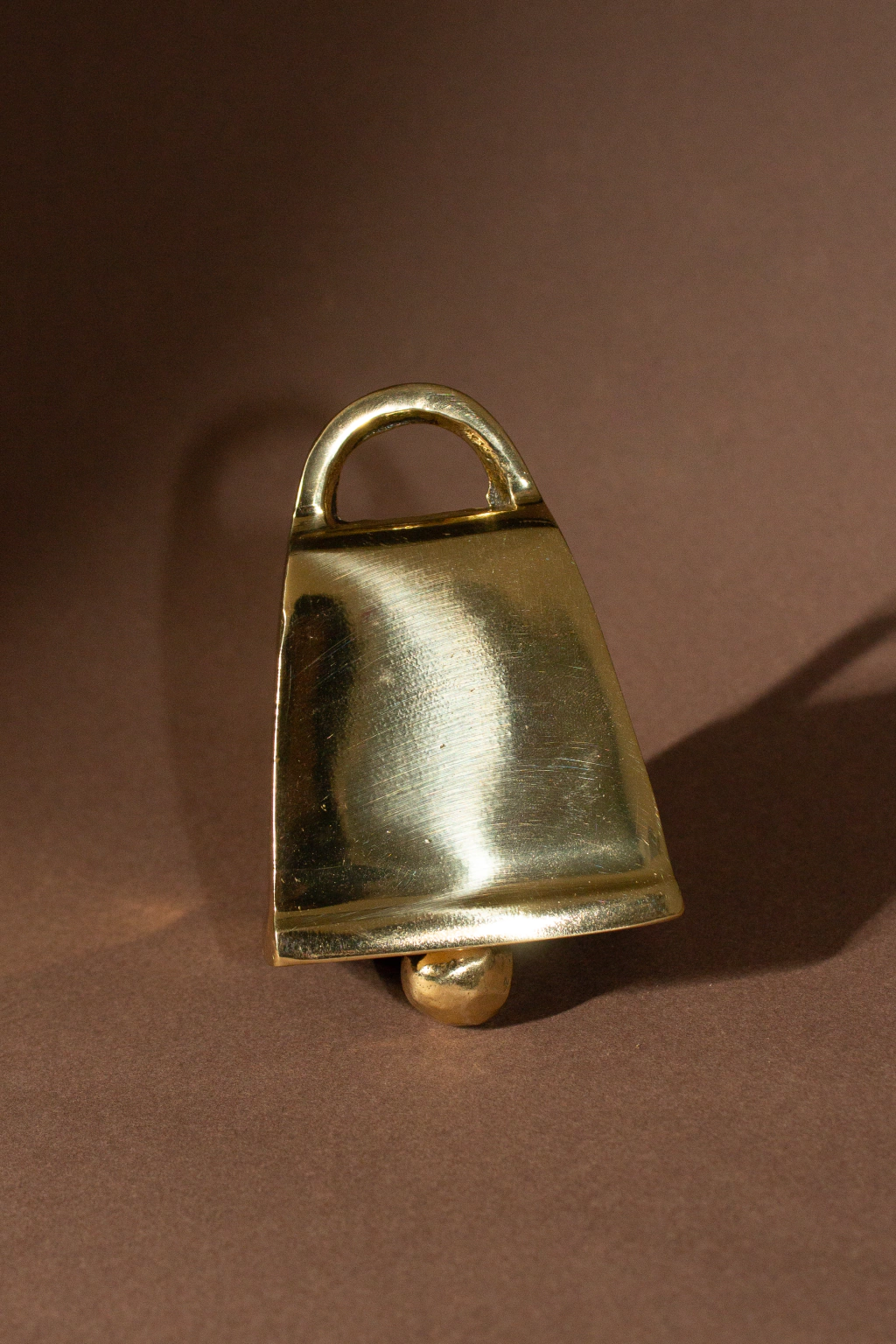 Campana cuadrada fabricada en bronce pulido.Medidas:Alto: 9 cmAncho: 6,2 cmProfundidad: 4,5 cm
