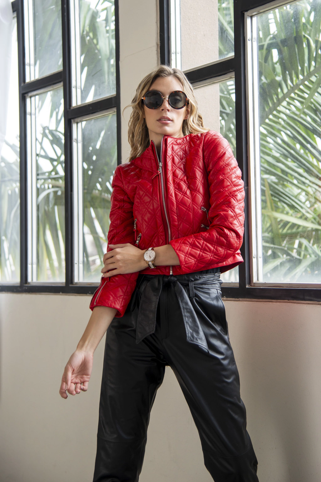 Campera Cocó Roja.Confeccionada en genuino cuero vacuno premiun. Cuello base. Totalmente pespunteada en matelassé con dibujo en rombos dobles. Cierres en puños y cuatro bolsillos delanteros inclinados también con cierres. Avíos níquel. Forrería 100% algodón con mangas en raso satinado. Una chaqueta encantadora. Chic puro, de look “a lo Chanel” que realza cualquier outfit.Somos fábrica. Disponible también en otros colores (Recordá consultarnos disponibilidad por whatsapp o mensaje privado). También podés personalizar el color de los avíos (en este caso níquel), ya sea en color bronce o dorado.