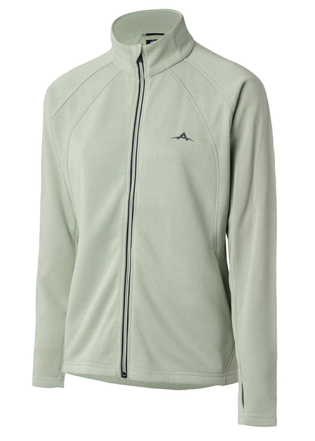 Poliamida frisada. Campera con recortes delanteros y estampa al tono en laterales, bolsillos laterales desde el recorte, cierre delantero combinado. Agujero para dedo.
