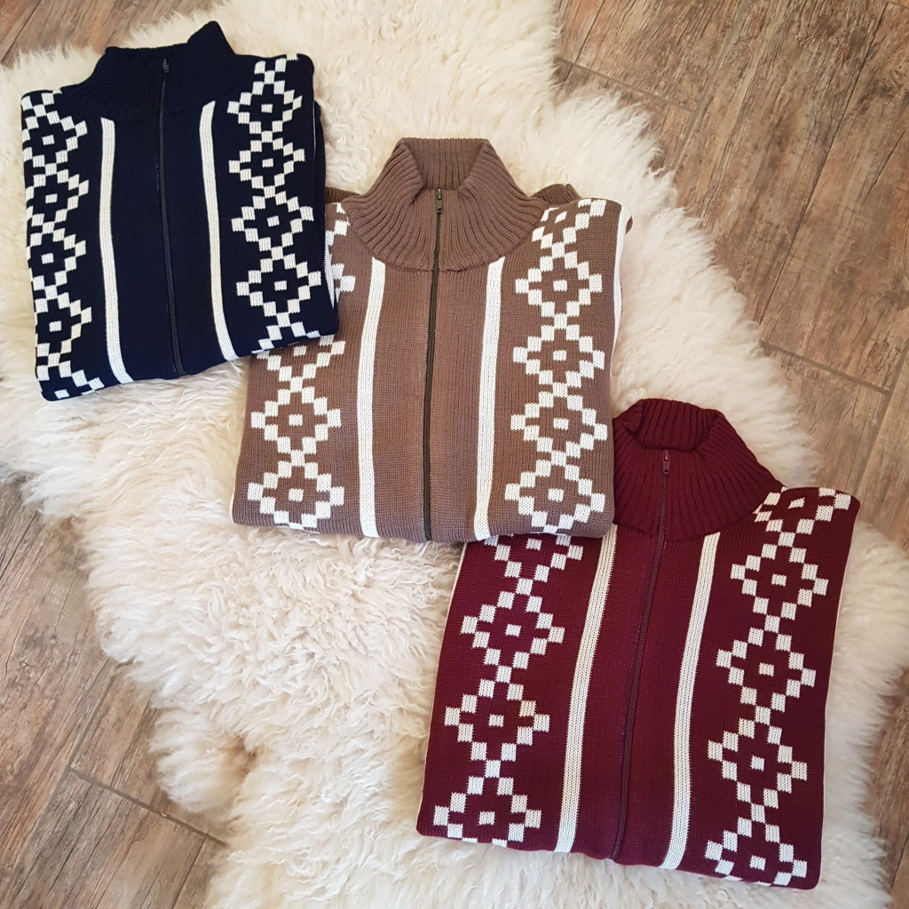 Campera en hilo con diseño guarda pampa para hombre.