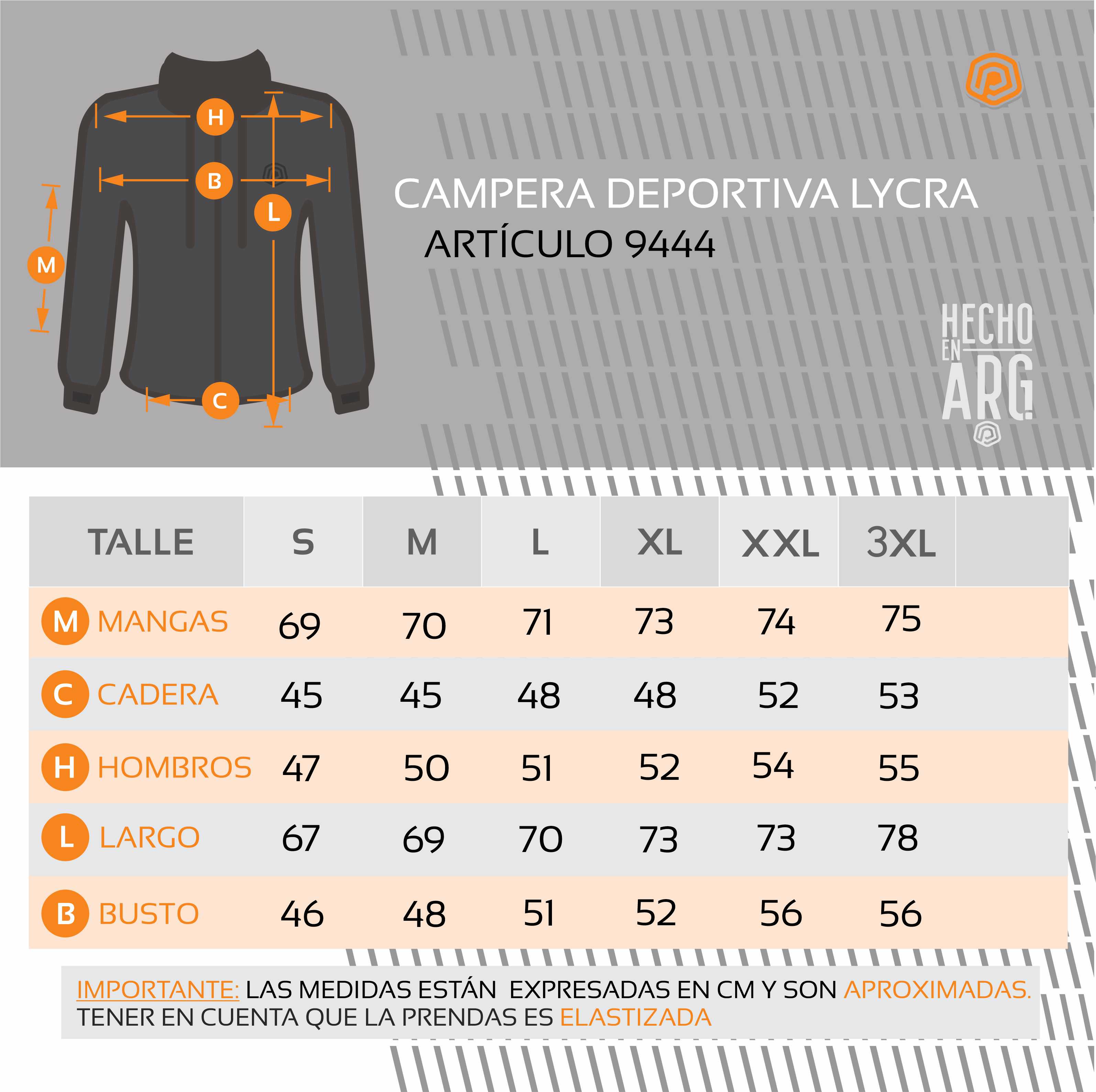 Campera de lycra deportiva, ideal para entrenar en épocas de frio ya que es una prenda liviana pero que mantiene la temperatura del cuerpo y nos permite entrenar de manera cómoda. Diseñada con cierre, sin capucha, y bolsillos a los costados, la campera de lycra es una gran opción para entrenar cómodo y abrigado.