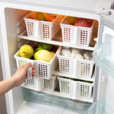 Canasto de plástico con manija, para esas alacenas altas que nos hacen ir a buscar el banquito..Organiza todo y optimizá lugar.En la ultima foto lo podes comparar con el chico.Medidas: 30cm x 20cm x 13cm
