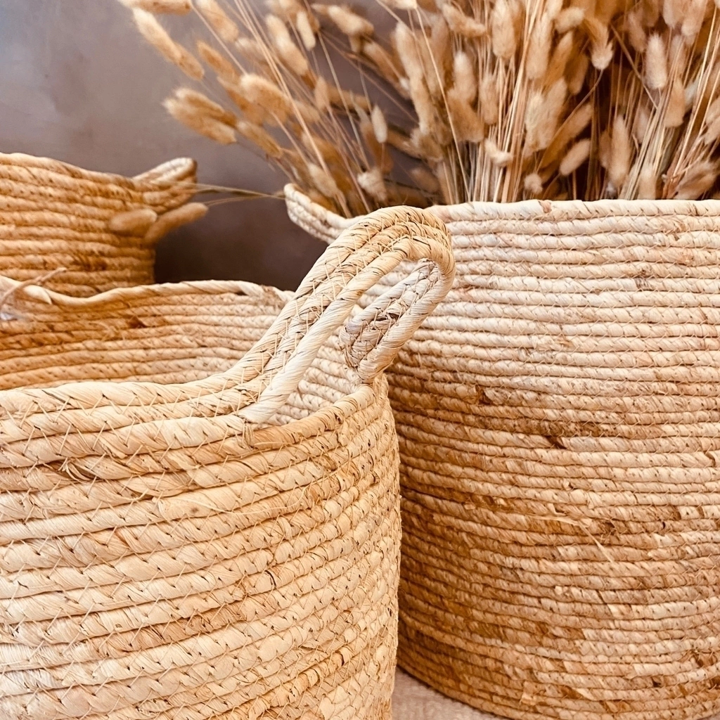 CANASTO PALMIRACanasto de fibras naturales con manijasProducto artesanal, por lo que puede haber una variación en el color, textura o tamaño.Medidas:30cm x 27cm / 35cm x 35cm / 40cm x 38cm.Envío:no incluido.En Valú Home no nos responsabilizamos por los daños o extravíos que puede sufrir el producto en el envío.