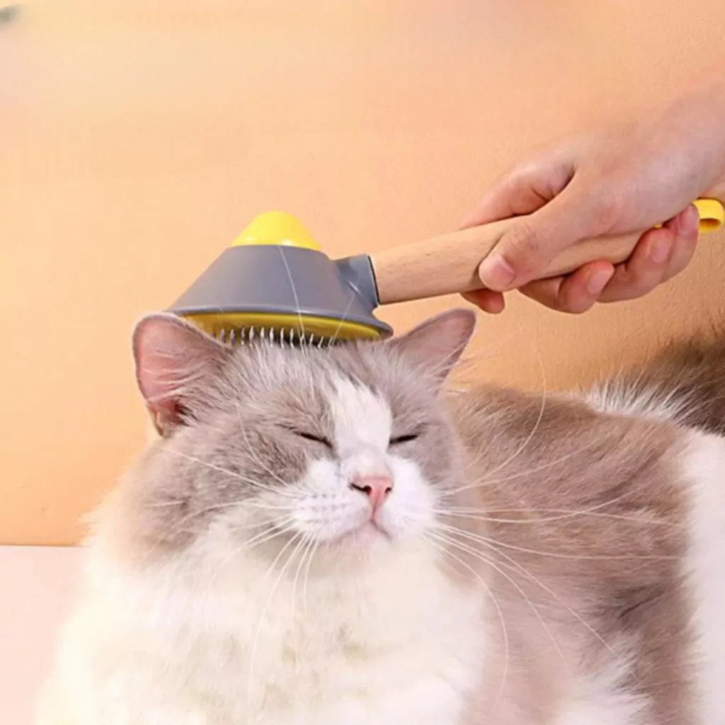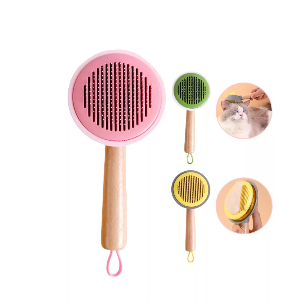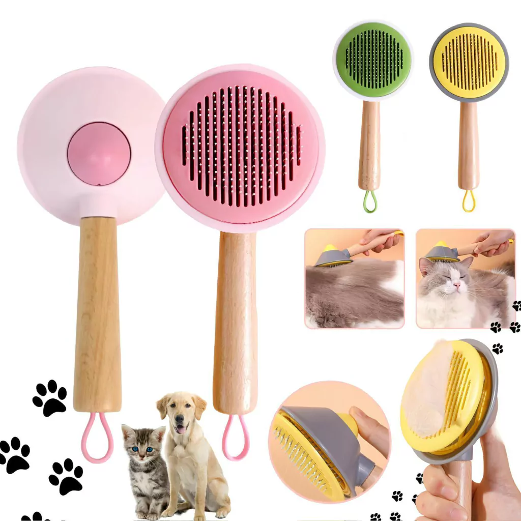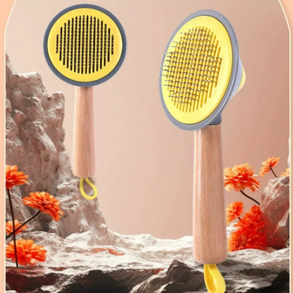 Cepillo para mascotas con sistema autolimpianteLuego de cepillar, presionas el botón dentro del cesto de la basura y listo.Se terminó el problema de pelos por toda la casa de nuestros amados amigos de 4 patas- Vienen en distintos colores: amarillo, rosa, y verdeMide 22,5 cm de largo