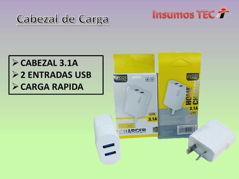 CARGADOR SIN CABLE DOBLE USBMARCA PRO21• Modelo: de pared• Voltaje de Salida: 5V• Voltaje de Entrada: 220V• Amperaje: 3.1A• Carga Rápida: sí• Puertos USB:2• Patas Homologadas: sí