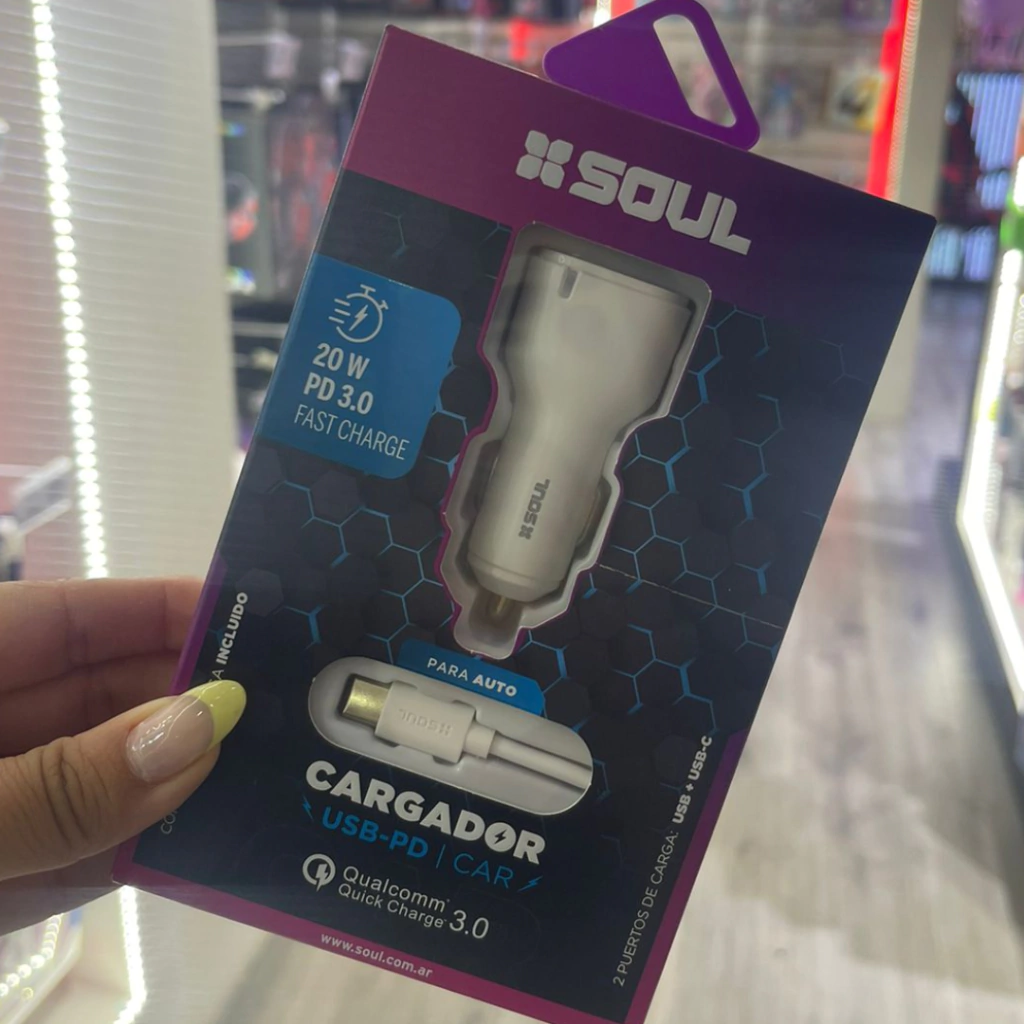 No dejes que la falta de batería limite tu día. Con el Cargador de Auto 20W Soul, ¡te asegurás de tener siempre energía al alcance de tu mano!
