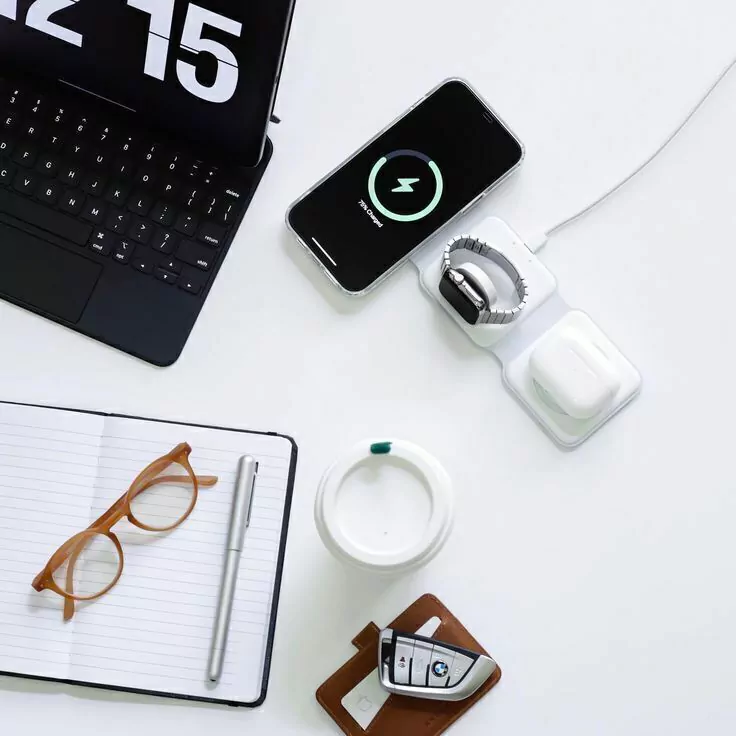 ¡Descubrí la comodidad de cargar tu iPhone sin esfuerzo! 🌟 El Cargador MagSafe 3 en 1 incorpora imanes perfectamente alineados, permitiendo que tu dispositivo se fije al instante y se cargue sin cables.