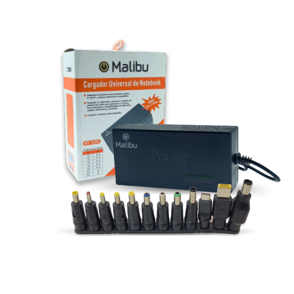 ¡¡ TENEMOS STOCK DE ESTE PRODUCTO !!Cargador para Notebook Universal con 12 Pines intercambiablesDESCRIPCION DEL PRODUCTO-Cargador Universal de alta calidad y diferentes voltajes de salida permitiendo ser Universal y adaptables a muchos modelos de Notebook comunes- Adaptadores compatibles con las principales marcas de notebook y netbooks- No solo le permitirá poder cargar la bateria de su notebook, si no también, le permitirá alimentar diferentes tipos electrónicos como: Monitores, Calculadoras, Teclados, Cámaras, y otros que requieran de la siguientes características eléctricas:* Especificación de entrada220 - 240 VCA, 50/60 Hz- 0.5 Amp* Especificaciones: Salidas- De 12v / 15v / 16v / 19v. VCC - 4.5Amperios de salida maxima- Y de 20v / 24v 4Amperios de salida maxima* VIENE CON 12 PINES INTERCAMBIABLESRealices todas las preguntas que desee. estamos a su orden=====================================================Somos BIGSALEONLINE. Tienda Online E-Commerce=====================================================