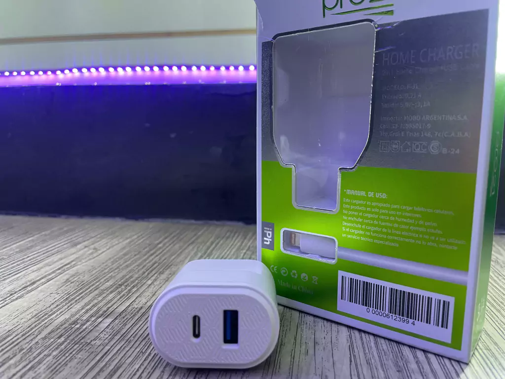 FUENTE CARGA RAPIDA DOBLE SALIDAPUERTO USB Y PUERTO USB CINCLUYE CABLE LIGHTNING