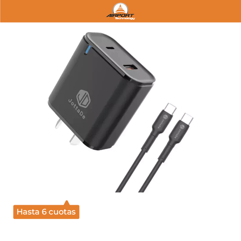 Cargador rápido USB JD T-22, diseñado para brindarte una carga rápida y eficiente. Este cargador incluye un cable tipo C a C de 1.20 metros de longitud, ideal para una conexión estable. Con una potencia de 20W y un puerto de salida USB estándar, este dispositivo es perfecto para cargar una amplia variedad de dispositivos electrónicos. Con características de seguridad avanzadas, como protección contra sobrecarga y una luz indicadora que te permite saber cuando esta encendido, puedes estar seguro de que tu dispositivo está protegido mientras se carga. Además, gracias a su tecnología de carga inteligente, este cargador ajusta automáticamente la corriente de salida según las necesidades de tu dispositivo, garantizando una carga segura y eficiente en todo momento. Con el cargador rápido USB JD T-22, disfruta de una carga rápida, inteligente y segura para tus dispositivos electrónicos, brindándote la tranquilidad que necesitas en todo momento ---------------------------------------------------- Características: Marca: JD Modelo: T-22 Cable: USB C-C Largo del cable: 120CM Entrada: 100 - 240V AC 50-60 Hz 0.4A Salida A: 5Vcc 3A, 9Vcc 2A, 12Vcc 1.5 A 18W Salida C: 5Vcc 3.5A, 9Vcc 2.22A, 12Vcc 1.67A 20W