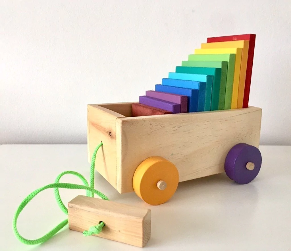 Carrito de arrastre con bloques de colores Medidas: 17 de largo x 9 de ancho x 17 de altoConsultar stock para entrega inmediata