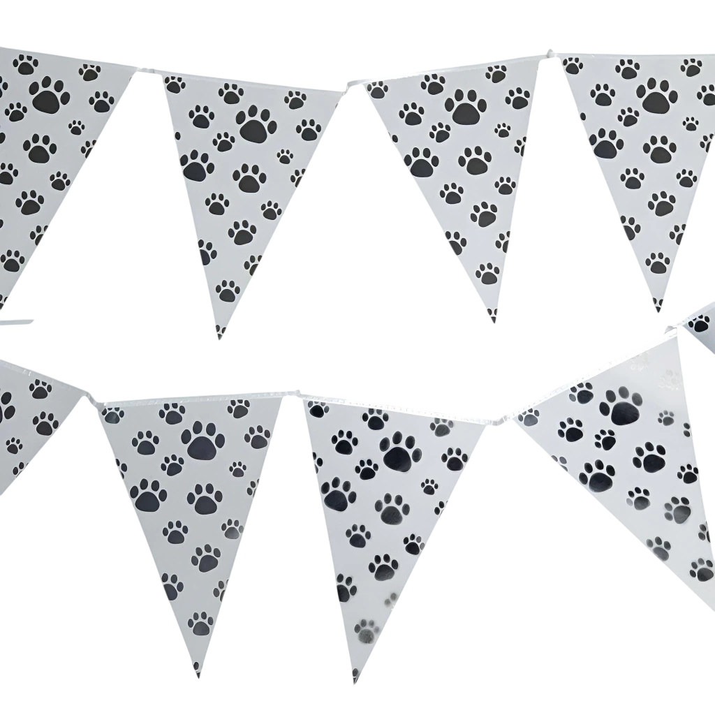 Almacén de Globos te ofrece:- Cartel Huellastipo guirnalda.- El precio corresponde a 1 cartel de 10 banderines.- Cada banderín mide aprox. 16 x 11 cm y se extiende por aprox. 1,8 mts.