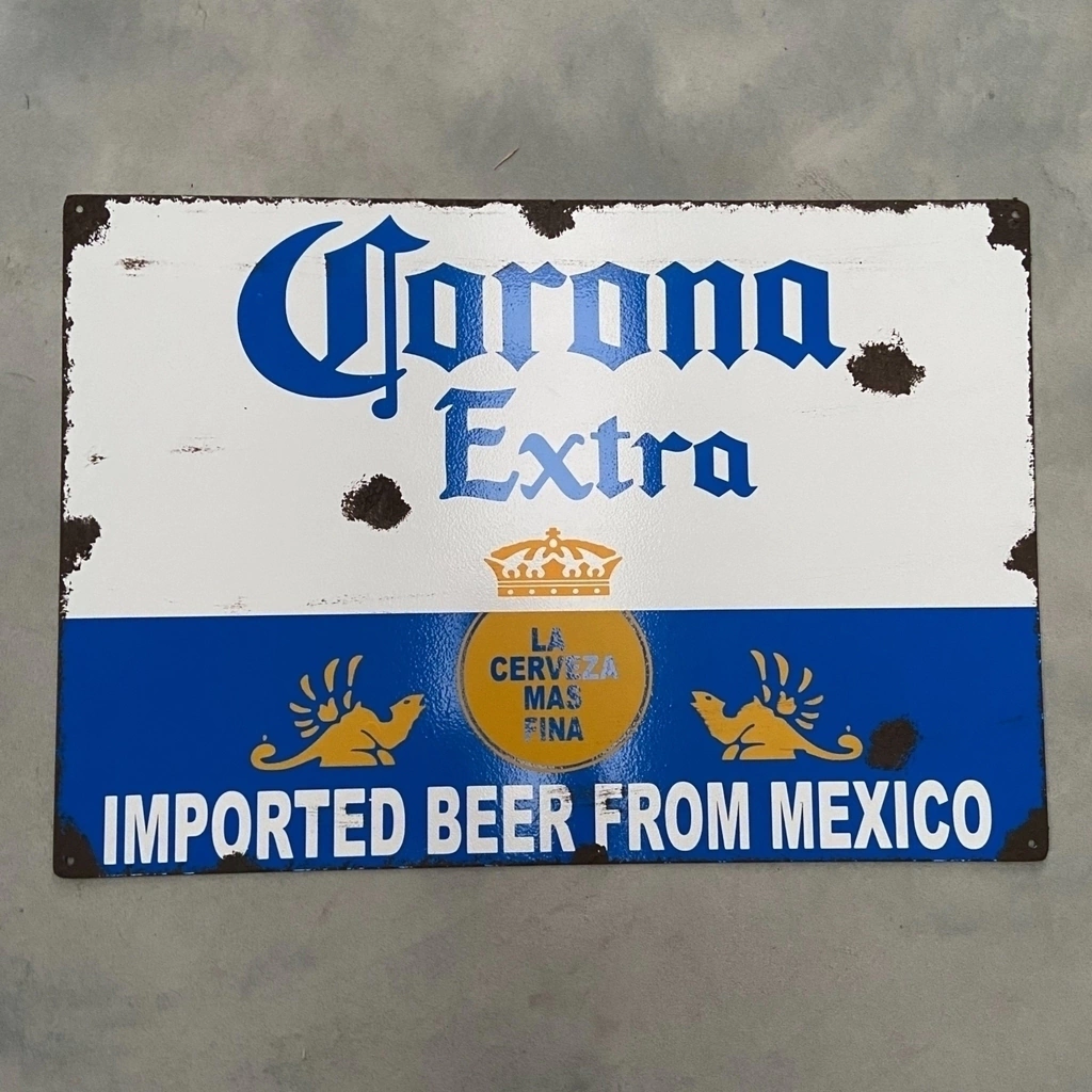 Cartel de chapa pintada con apliques de vinilo, y óxido simulado con pintura