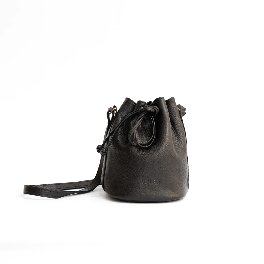 Esta elegante cartera tipo bucket está confeccionada en cuero de curtido vegetal, conocido por su durabilidad y acabado natural en un cálido tono negro. Su diseño minimalista incluye un cierre ajustable tipo cordón, que combina estilo y funcionalidad. En su interior, cuenta con un práctico bolsillo con cierre, ideal para organizar tus esenciales de forma segura. La correa ajustable permite llevarla al hombro o cruzada, convirtiéndola en una opción versátil para el día a día o para ocasiones especiales.Dimensiones: 25 cm (Alto) x 20 cm (Largo) x 18 cm (Profundidad)Cada producto es único y de edición limitada.*Por utilizar procesos artesanales y materia prima no reproducible, pueden producirse ligeras diferencias entre el producto que estás viendo en las imágenes de nuestro E-Shop y el que recibís.