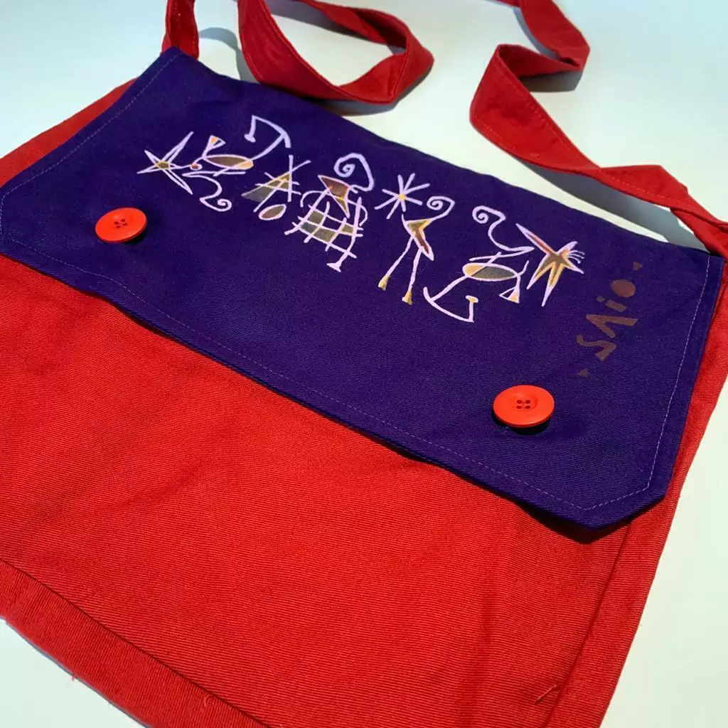 Cartera de lienzo pintada a mano y en los casos de batik también están teñidas a mano.