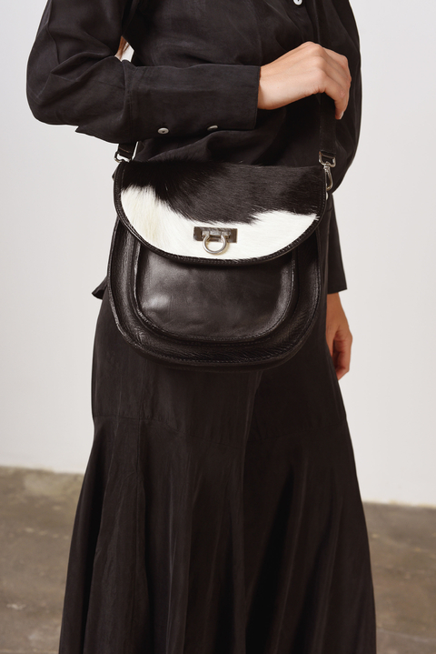 bandolera de tamaño mediano rígida,con tapa en piel, Cierra mediante un broche muy fino en niquel.Tiene una correa regulable que permite llevarla al hombro o cruzarla.El interior está forrado en gamuza y tiene un bolsillo pequeño. Está confeccionada en cuero vacuno. Medidas: 23 CM ALTO X 24CM ANCHO X 6CM PROFUNDIDAD.