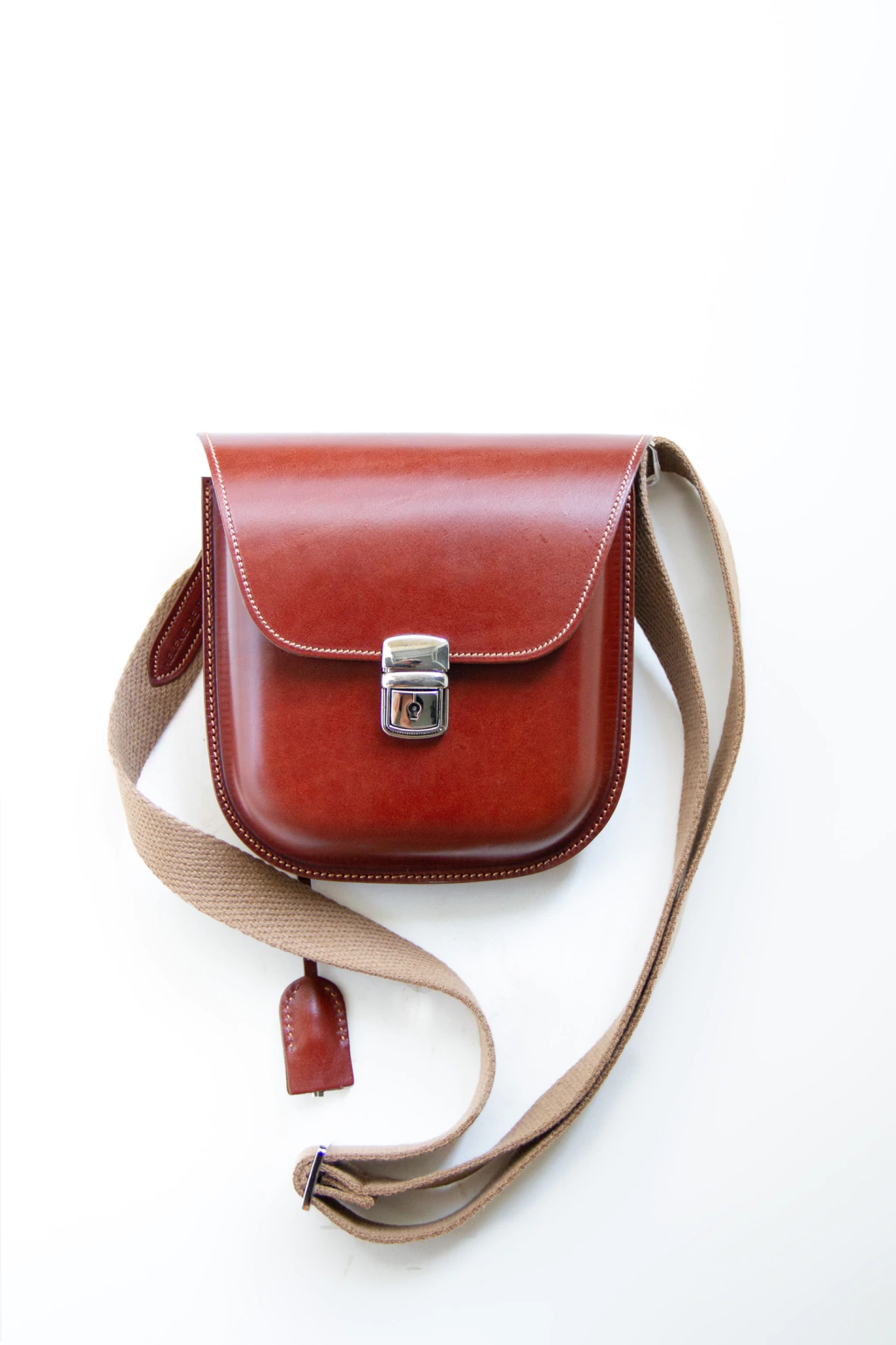 Cartera rectangular mediana de diseño minimalista con cierre en color plata, que tiene un cerrojo con llave. Tiene una correa corta con la llave para la apertura, y una correa larga desmontable de cinta reforzada 100% algodón