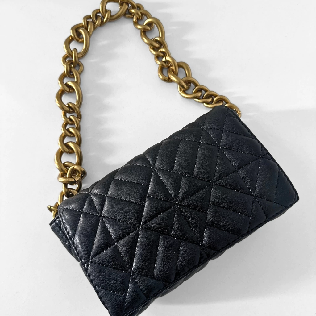 Cartera TalentDetalles: Cartera de hombro. Tapa que cierra con una hebilla imantada a presion. Interior forrado en tela poliester con un bolsillo. Herrajes en color bronce.Material: cuero sintético matelase opacoMedidas: 21 cms ancho, 13 cms alto x 5 cms amplitud