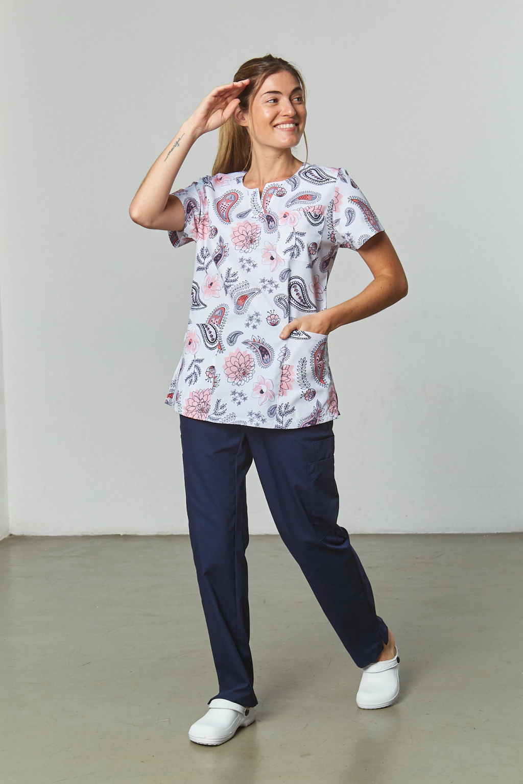 Casaca manga corta. Tiene un escote redondeado con vista en V. Trae 3 bolsillos Plaqué con tajos laterales. Sus colores permiten que sea súper combinable con cualquiera de nuestros pantalones. Su composición es de poliéster y algodón.