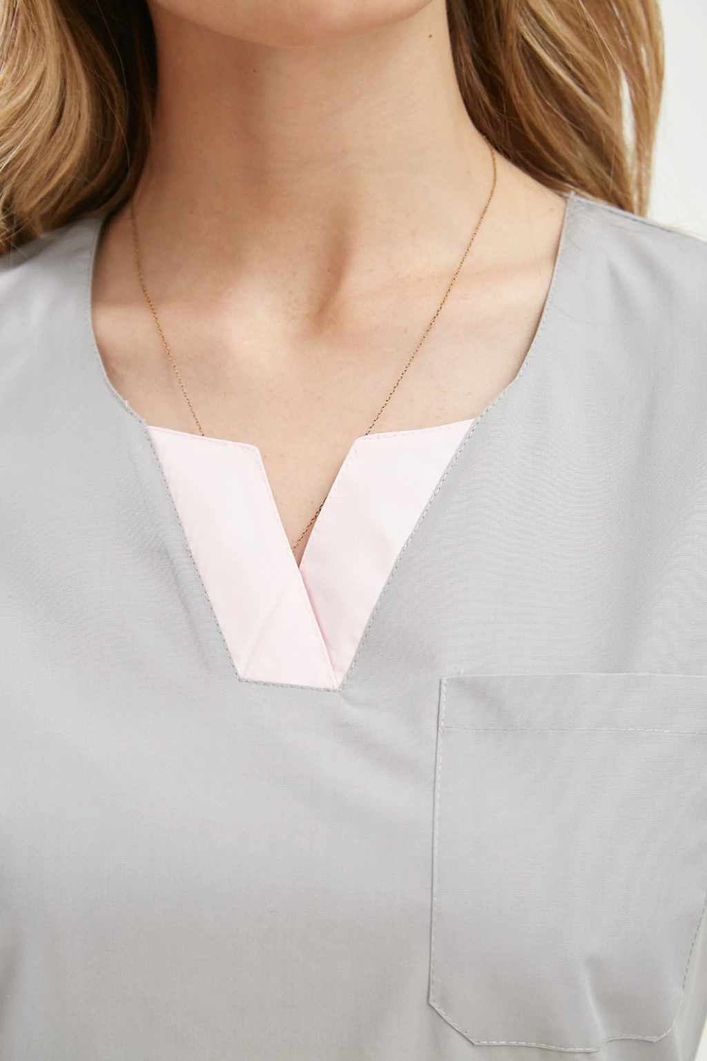 Casaca dama manga corta. Escote redondeado con vista en V. 3 bolsillos Plaqué, Tajos laterales.