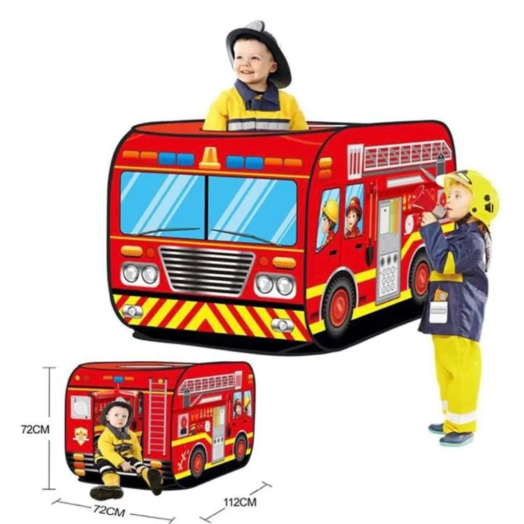 CARPITA PEGABLE BOMBERO- Casita carpa infantil.- Fácil y rápido armado con poliéster- Ideal para el aire libre o para interior.- Medidas: 72cm x 72cm x 112cm.- Súper compacta al guardar.- Excelente con el medio ambiente: 100% reutilizable- Se recomienda su uso a partir de los 2 años.