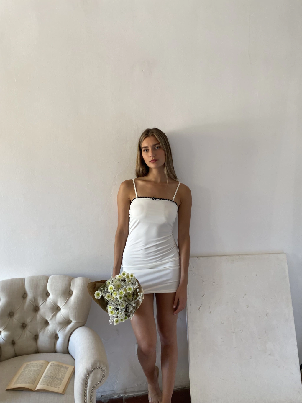 Vestido de microfibra con moño.Talle único.tela spandex